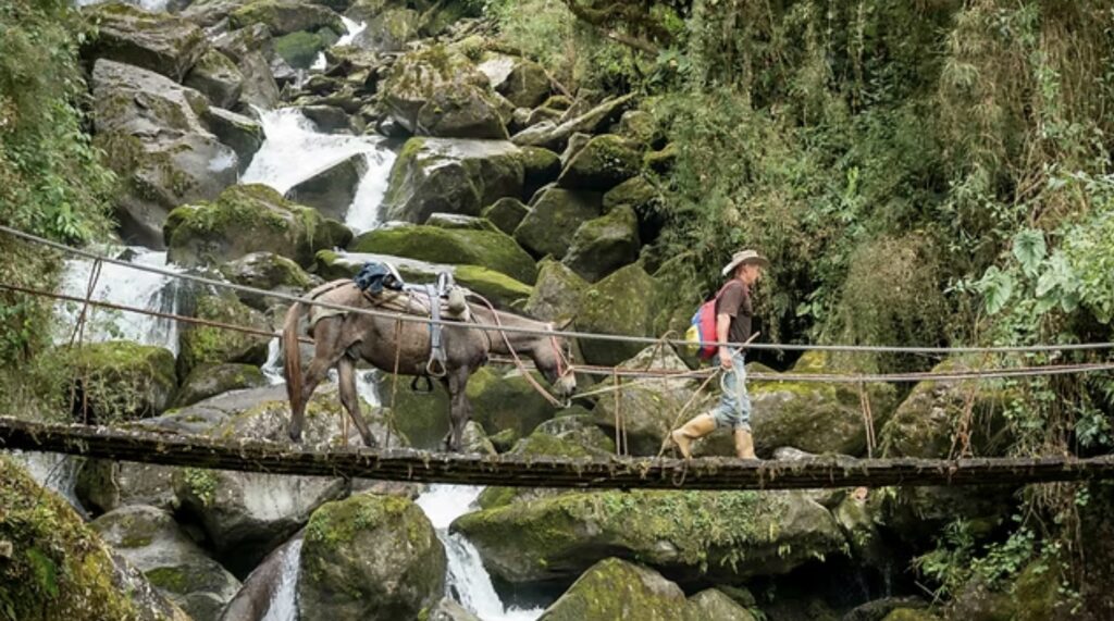 Black bean Caribbean stew, smoked pulled jackfruit, fried plantain, white rice, mojito de cilantro.